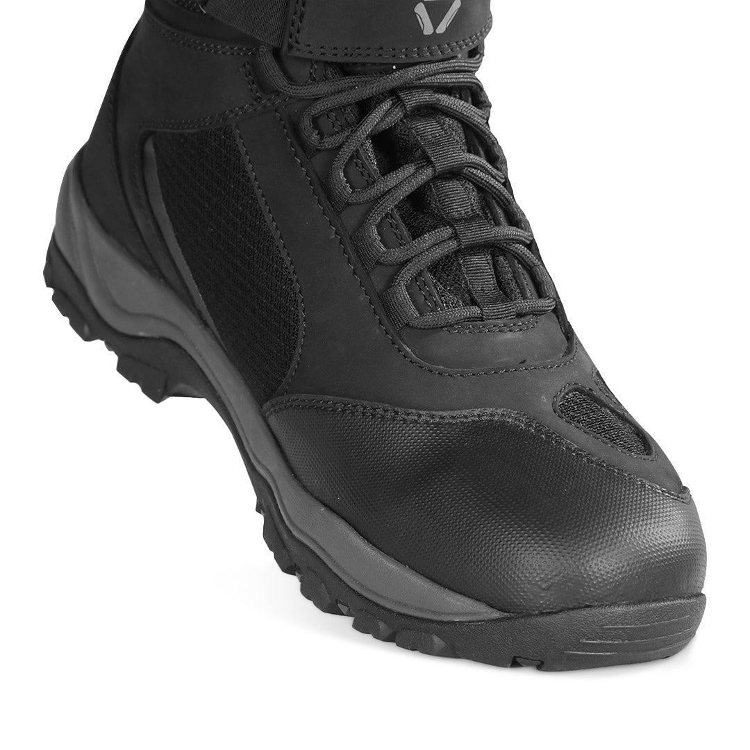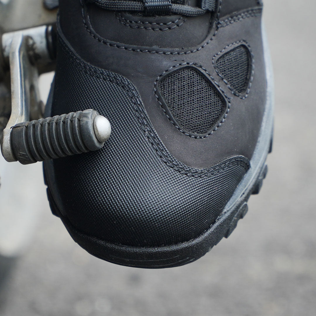 A thicker, cushioned sole absorbs shock from both foot pegs and hiking trails, offering stability across different terrains.