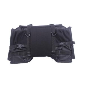 While very few bikers carry a comprehensive tool kit, up in the mountains or on the long way home mechanical failure or puncture can happen to anyone anywhere, the 2 sections can hold your spanner set, screwdriver set and heads and all equipment required to remove your tyre, the hard cased stiff back support ensures that the weight does not lean on the sides while on off roads or cornering, with double stitched elastic straps to hold them and hard cased front with hinge type belts ensures a comfortable workspace to work on your bike without having to dig through the bag or worrying about something falling down!