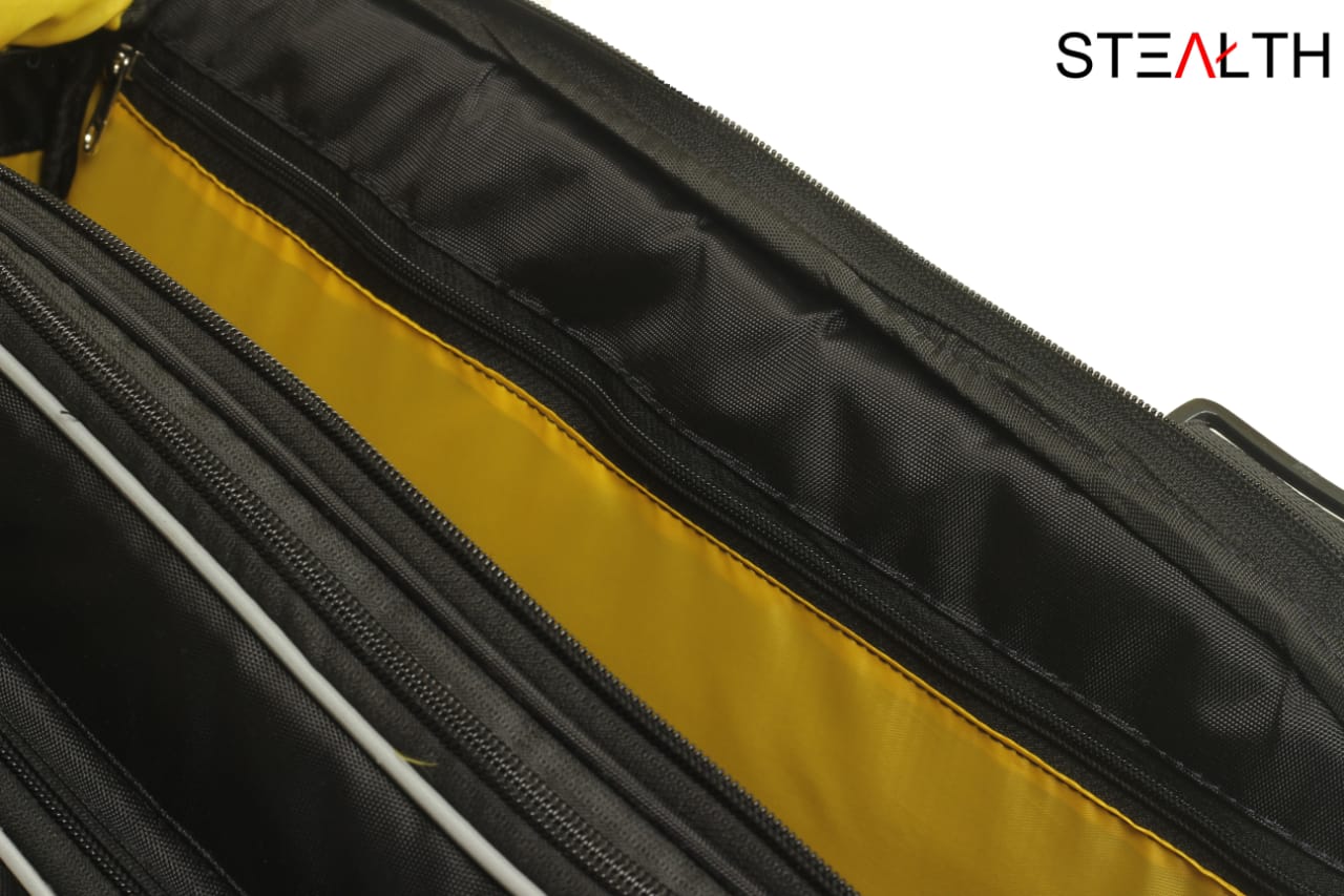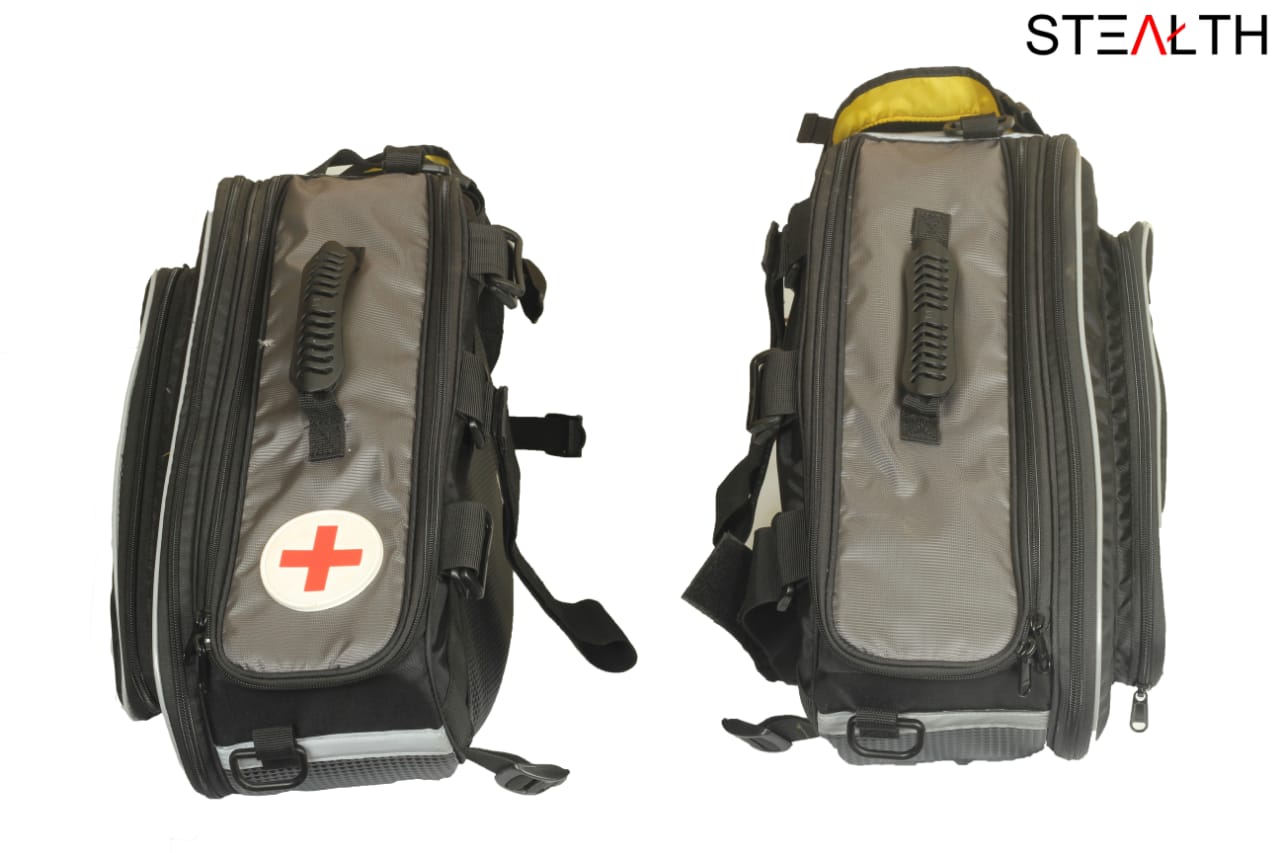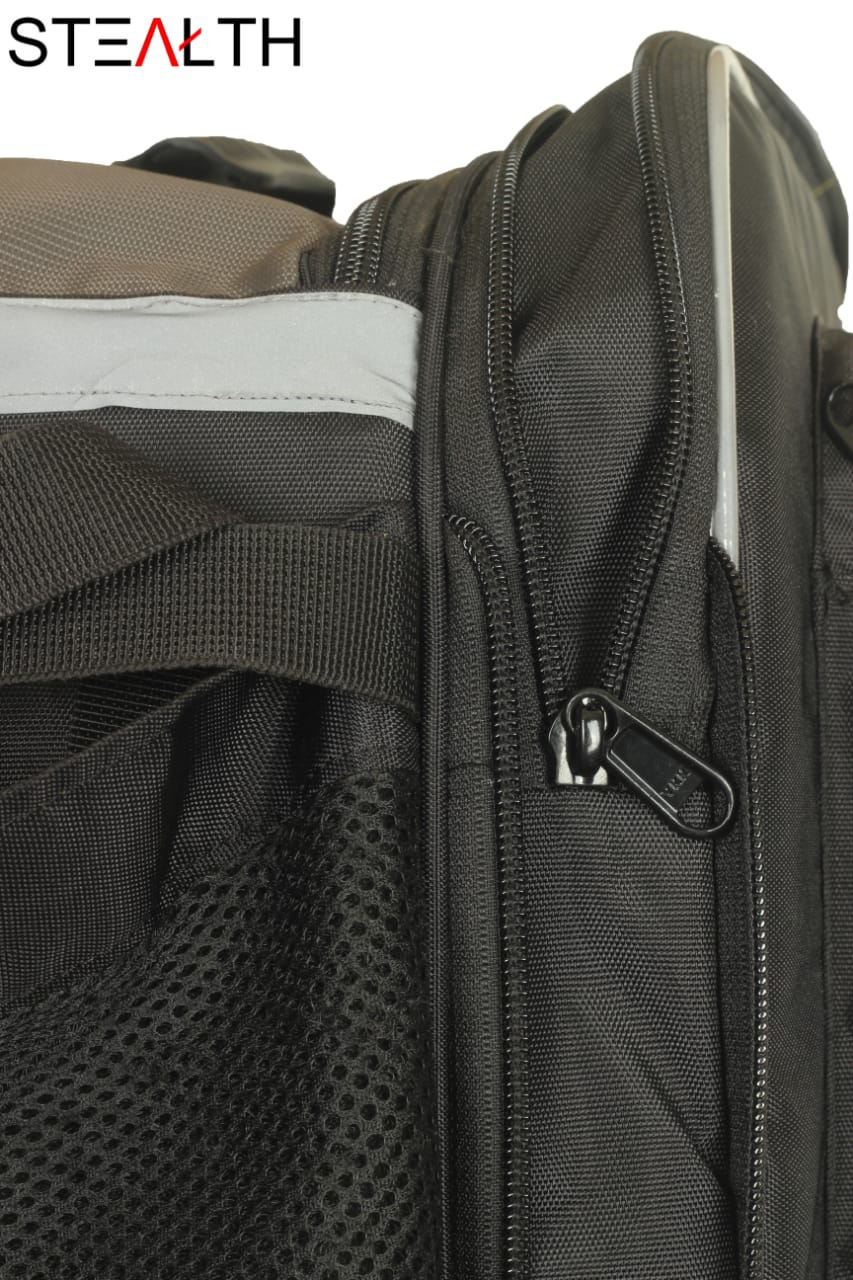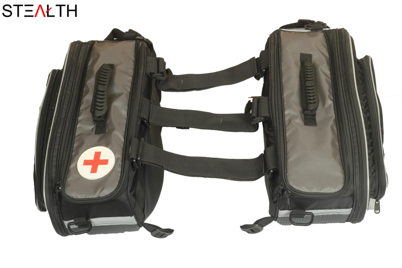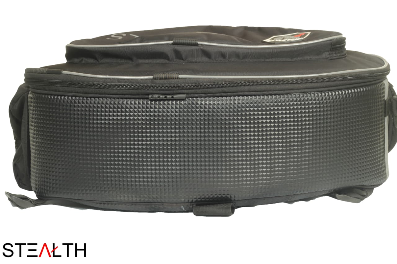 Post use carry handle and shoulder straps have been provided along with corrugated rubber base and back to prevent wear and tear damage from terrain and on bike use. Heavy duty but light weight 1000D jacket grade fabric for long life and durability, stitched on Japanese make heavy duty Juki machines with high tensile strength 6 ply pure nylon Indian made threads.