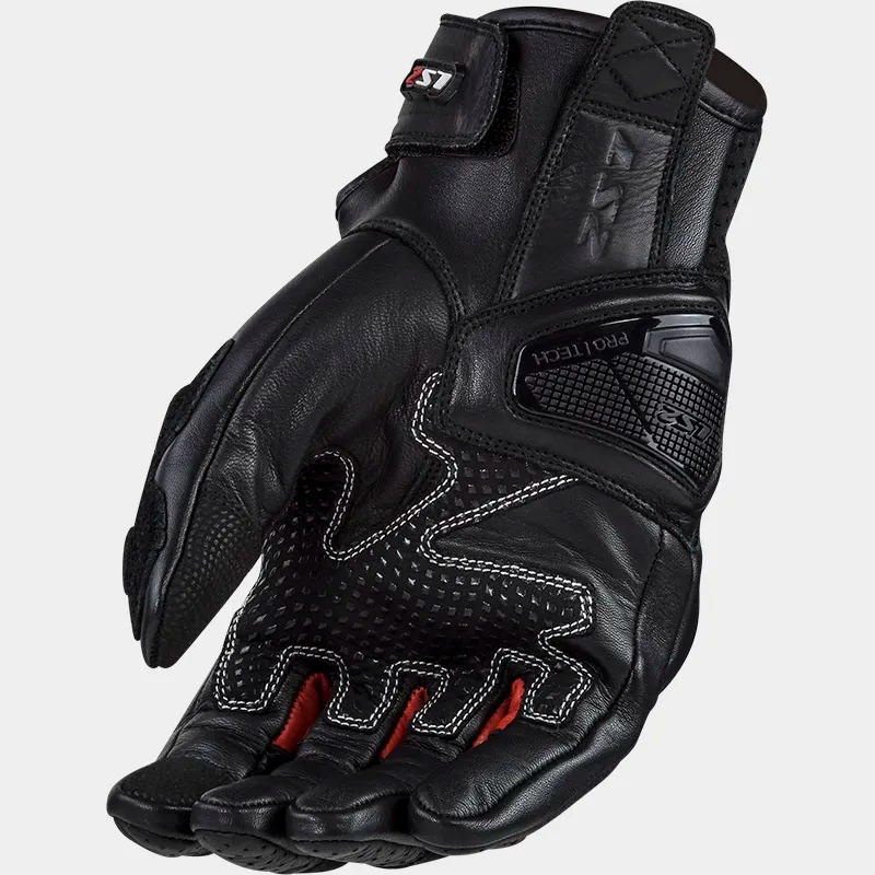 Resistant leather gloves with carbon knuckles and finger protection. Strong reinforcements on palm and thumb. Slip-resistant silicone patch for better grip. Touch screen compatible.