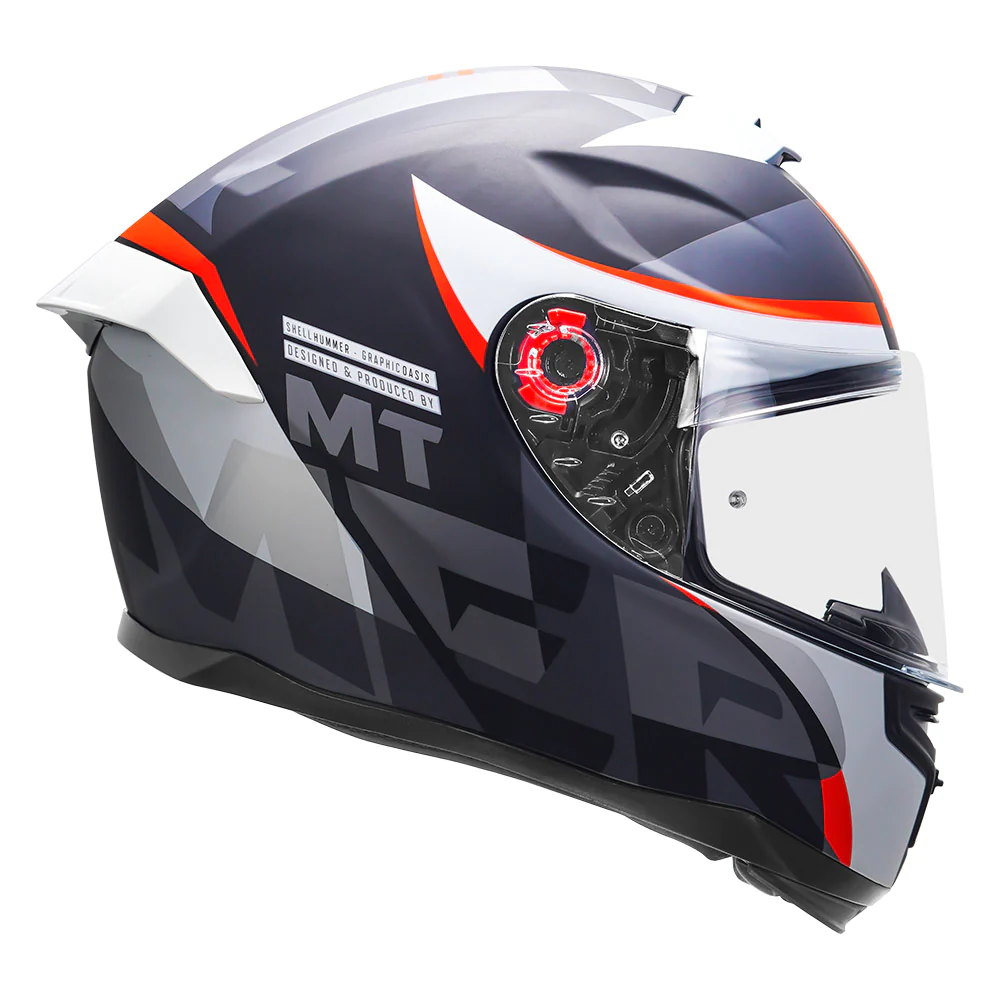 Strikingly designed MT helmet with uncompromising features like molded polycarbonate shell, ISI, ECE & DOT certifications, pinlock ready visor and micrometric fasteners.