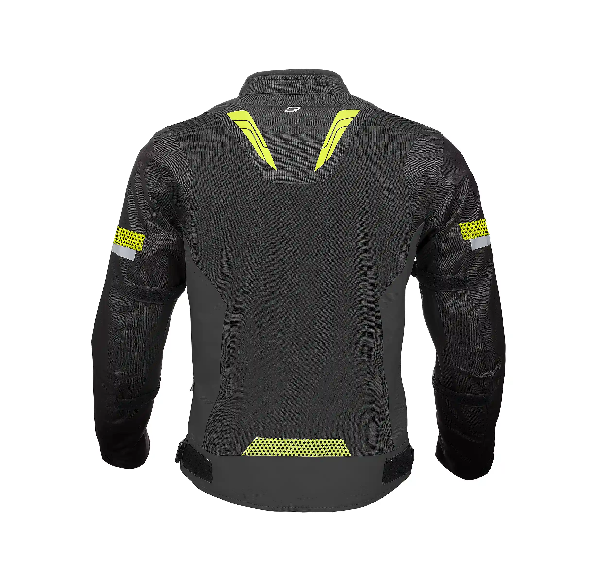 Durable 700 Denier polyester and mesh chassis, with Safetech CE Level 2 armour in the shoulders, elbows and the back, while the chest is now protected by Powertector CE level 2 armour.