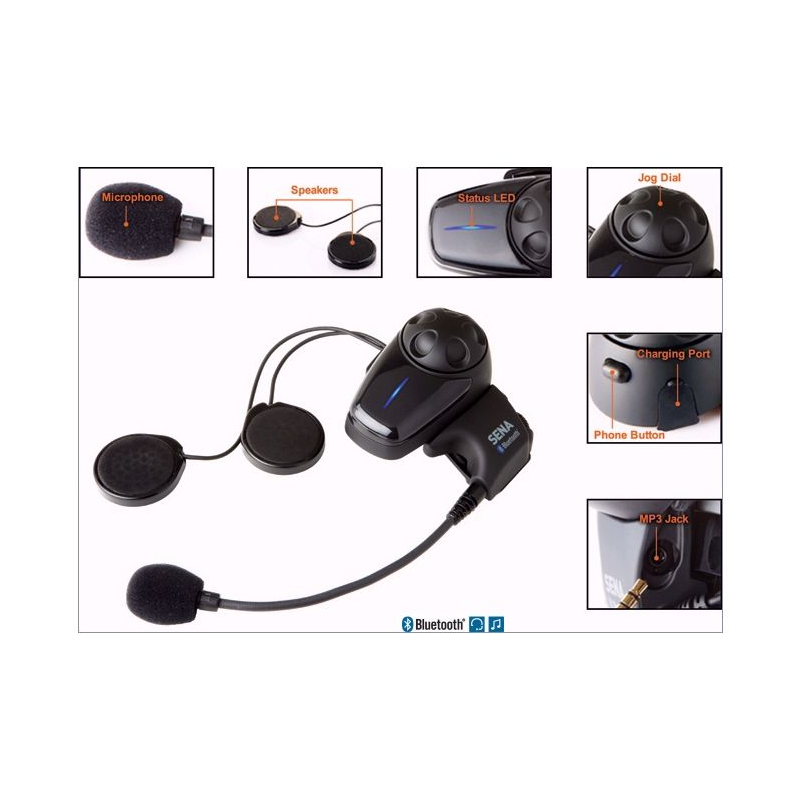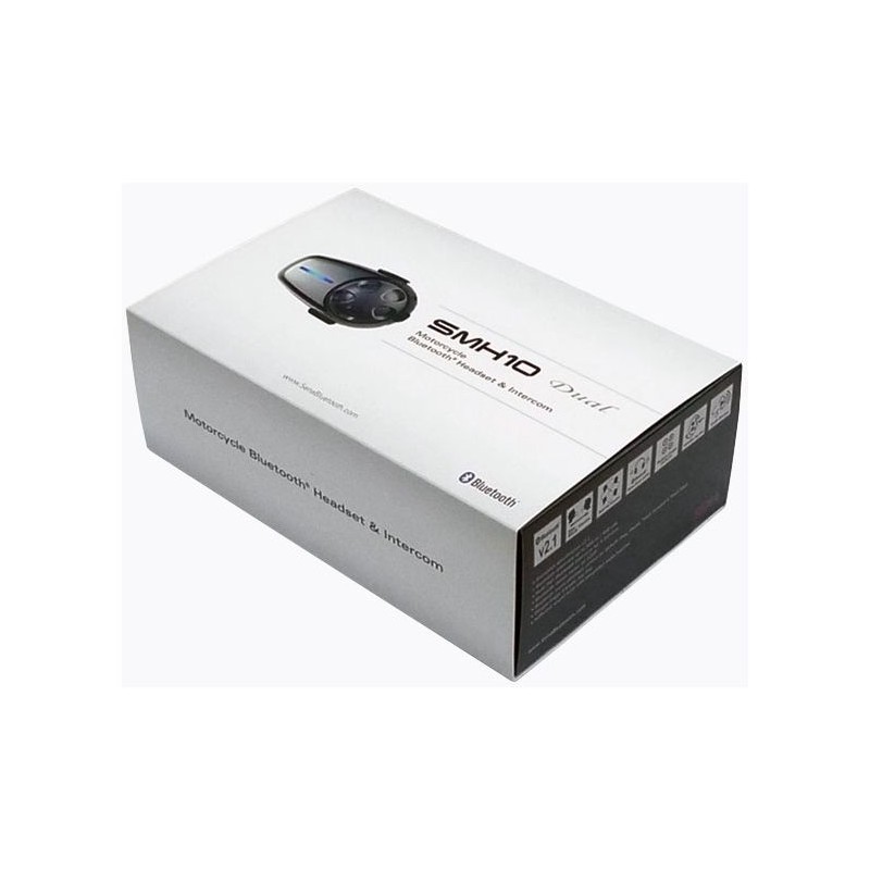 The SMH10 is a Bluetooth v3.0+EDR Class 1 Stereo Headset with long-range Bluetooth Intercom designed specifically for motorcycles. With the SMH10 on your helmet, you can call hands-free on your Bluetooth mobile phone, listen to stereo music or voice instructions of GPS navigations by Bluetooth wirelessly, and have intercom conversations in full duplex with a passenger or other motorcycle riders. Thanks to the latest Bluetooth v3.0+EDR and the advanced digital processing technology, the Sena SMH10 bluetooth helmet communication system offers the best sound quality for both incoming and outgoing sound in its class. Also, the easy-to-access and intuitive button operations make the SMH10 a perfect companion for motorcycles.