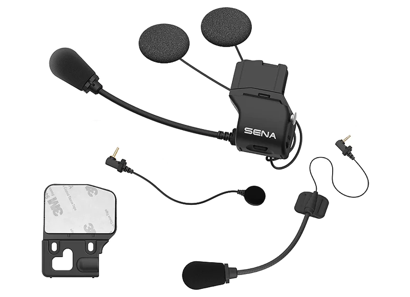 Universal clamp kit with HD Speakers for the 20S Evo / 30K / 50S Bluetooth motorcycle communication system. Includes fasteners, speaker pads, microphone sponges, speakers and microphones, and more.