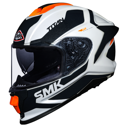 SMK Titan Arok is full face helmet, made of abrasion resistant PFT fiber composite shell. SMK Titan with its new-age lightweight design and aggressive styling provides an attractive package of ‘Premium Luxury’ and ‘Safety’ to both motorsports enthusiasts and tourers.
