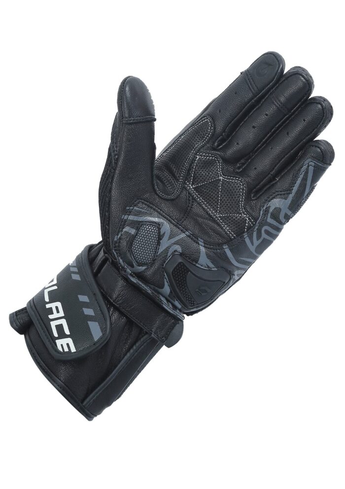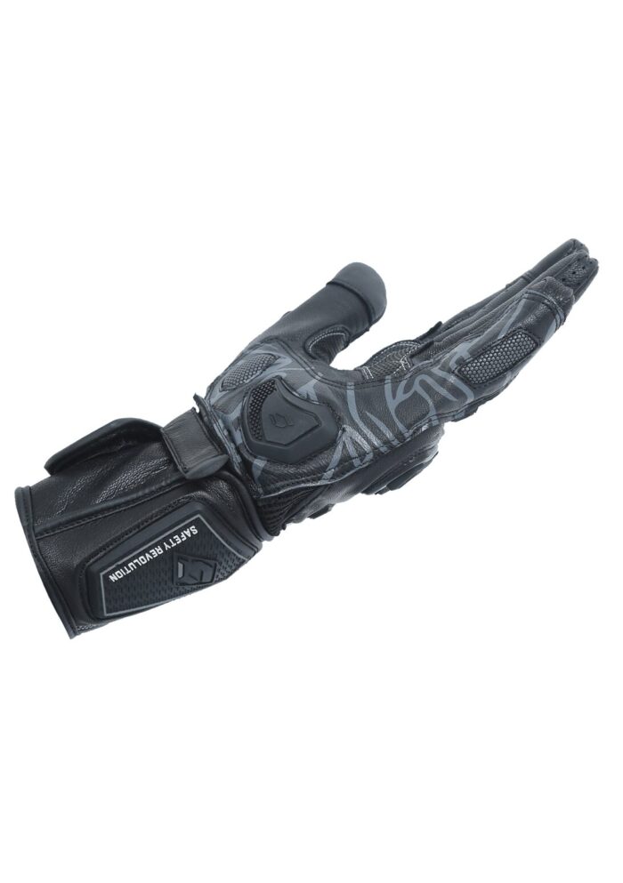 This combination allows the palm of the gloves to slide on the tarmac and prevent injuries to wrist bones due to hyper-extension.