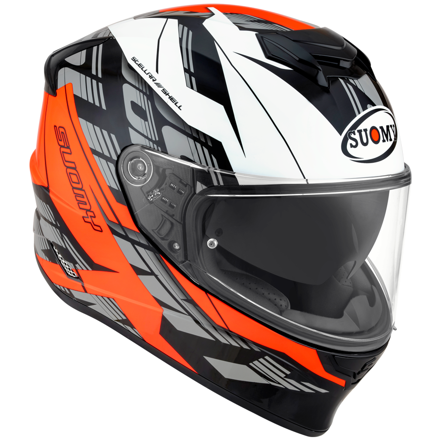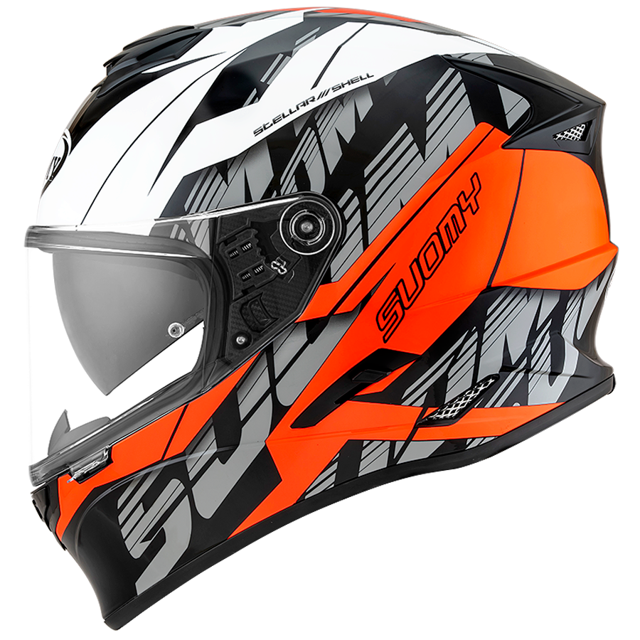 Born to meet the needs of the youngest Suomy riders, STELLAR is the full-face helmet accessible to all that draws inspiration and supports its founder in composite fibers, Speedstar. Designed for urban and touring use, it harmoniously combines safety, design, and comfort. Large visor in Optical Class 1, internal Pinlock Max Vision lens, and integrated maxi sun visor, are the allies to satisfy every visibility condition. Stable and comfortable fit, removable interiors in hypoallergenic fabric, and front air intake, which guarantees a greater flow of air even at the lowest speeds, now must be indispensable even on a helmet with an advanced thermoplastic cap. New graphics, captivating and trendy, which add to the iconic colors of Stellar.